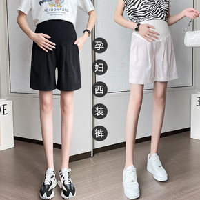 实拍孕妇短裤女夏外穿休闲五分裤夏季薄款孕妇西装裤中...