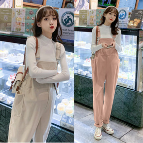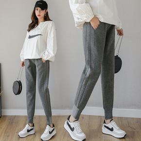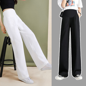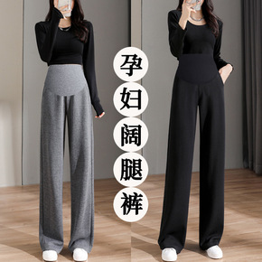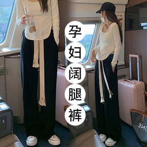 现货韩版孕妇西装托腹裤子春秋外穿时尚长裤垂感加长阔...