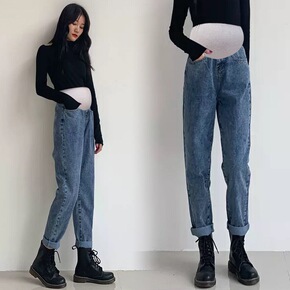 孕妇裤子外穿时尚宽松孕妇牛仔裤春秋显瘦托腹孕妇裤韩...