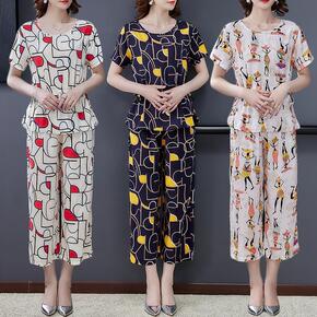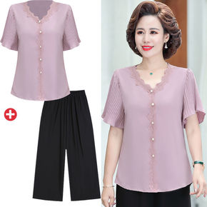 棉绸妈妈装2021夏季时尚收腰显瘦系带抽绳阔腿裤短...