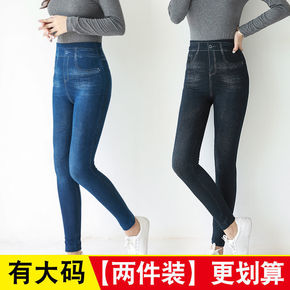 春秋新薄款加绒仿牛仔打底裤女高腰外穿大码胖mm显瘦...