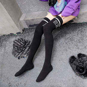 日系女士棉过膝袜硅胶防滑秋冬街头潮牌长筒袜学生高筒...