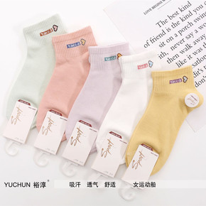 新款袜子男春夏短袜低帮纯色刺绣字母棉袜运动袜男士篮...