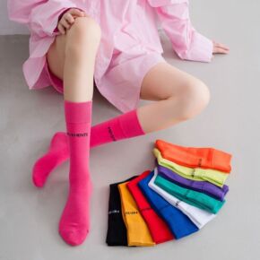 秋冬 彩色荧光袜子女中筒袜ins潮薄款韩国糖果色堆...