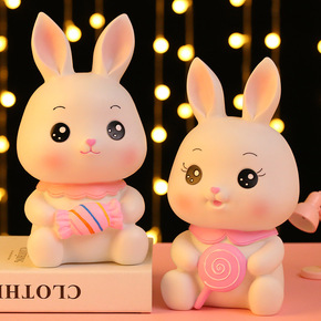 可爱糯米兔萌萌棒棒糖果兔子储蓄罐耐摔搪胶存钱罐儿童...