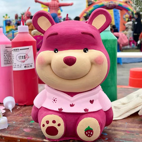 草莓熊非石膏娃娃白胚熊涂色儿童diy彩绘涂鸦搪胶娃...
