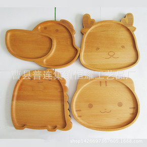 木质木盘橡胶木创意卡通兔子儿童宝宝分格餐盘水果点心...