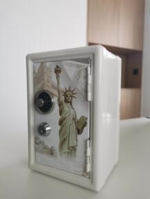 新款自产18厘米复古保险柜印有世界著名风景胜地金属...