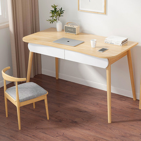 家用仿实木色办公桌简约现代书桌卧室单人学生写字电脑...