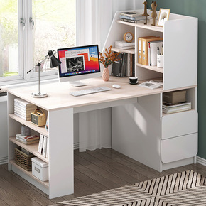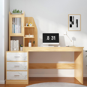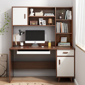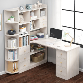 电脑桌写字桌桌椅组合家用卧室书桌书架书柜一体桌转角...