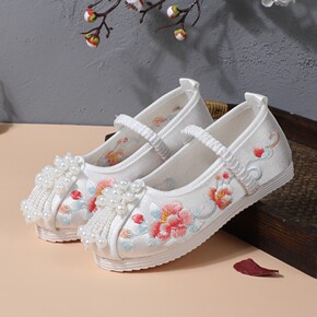 春夏新款汉服鞋绣花鞋中国风宝宝鞋复古棉布女童耐磨布...