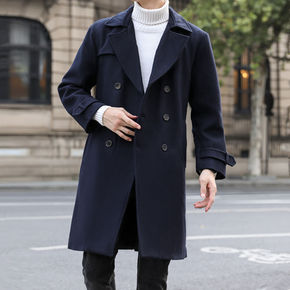男士秋冬外套中长款呢子大衣青年英伦格子西装毛呢帅气...