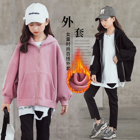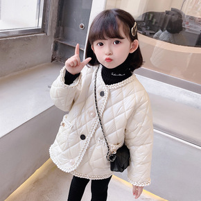 女童翻领夹棉毛呢外套2020秋冬装保暖上衣洋气中大...