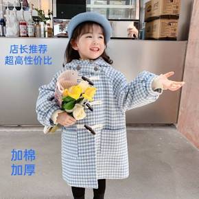 女童冬装夹棉加厚韩版休闲中长款呢大衣儿童批发风衣外...