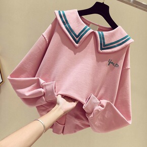 2022春冬季新款女装上衣打底衫卫衣绒衫娃娃领磨毛...