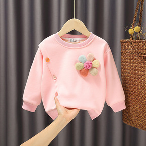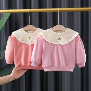 童装女童卫衣春秋季儿童圆领套头上衣薄款婴儿女宝宝长...