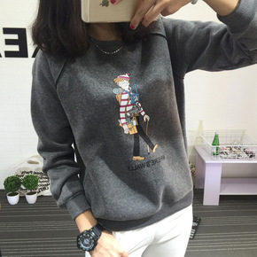 卫衣女春秋冬季韩版加绒加厚套头纯棉宽松显瘦学生圆领...