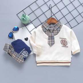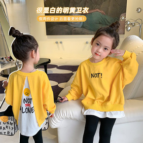 2022春秋男女潮童假两件卫衣韩版儿童宽松套头衫百...