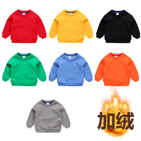 幼儿园团体服班服表演用红色儿童加绒加厚卫衣纯色中小...