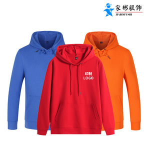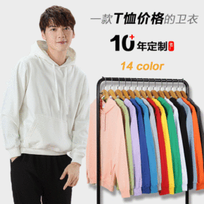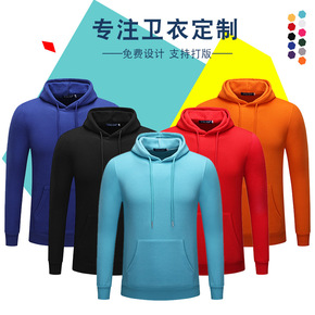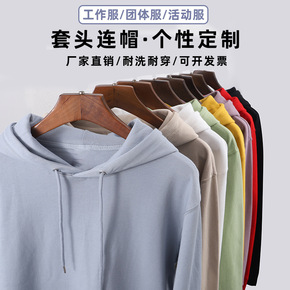 秋季新款宽松连帽卫衣印制纯色长袖批发工作服广告衫班...