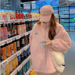 羊羔绒外套女 大码皮草外套时尚慵懒仿毛绒开衫学生女...