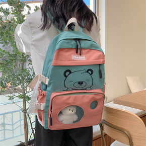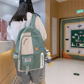 欧洲站森系拼色小清新双肩包女韩版百搭书包女大学生中...