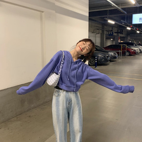 加绒加厚卫衣女秋冬新款韩版学生纯色连帽拉链开衫保暖...