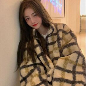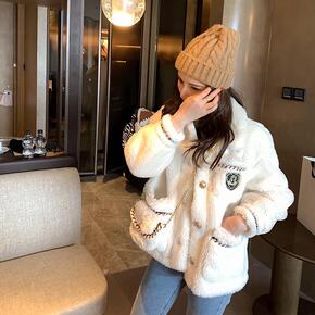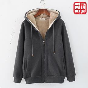 仿羊羔毛外套女2021冬季新款学院风卫衣加厚宽松棉...