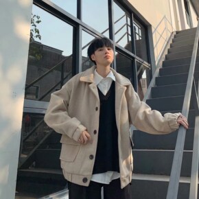 秋冬季男士短款毛呢子风衣韩版学生潮流外套港风青年复...