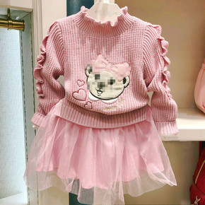 女童秋季长袖儿童秋冬装小女孩针织裙子宝宝公主裙秋款...