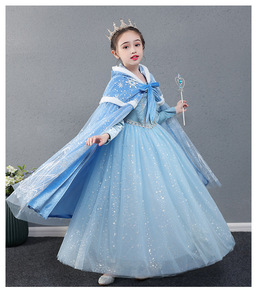 女童冬季公主裙儿童网纱连衣裙爱莎公主裙带披风两家套...