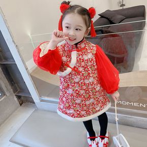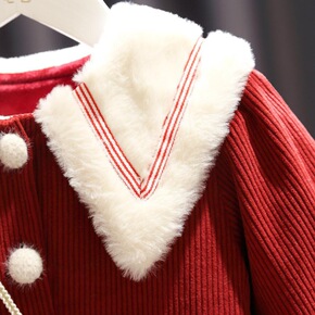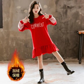 女童拜年服冬装2021新款中大童儿童秋冬款连衣裙加...