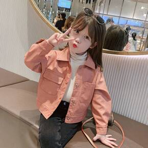 童装女童洋气皮衣外套儿童夹克春秋款宝宝韩版秋装上衣...