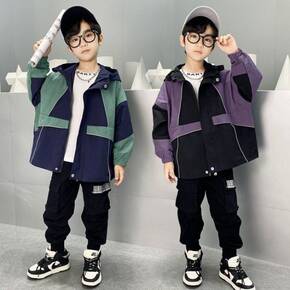 男童风衣外套2022新款儿童春秋款呢大衣男宝宝韩版...