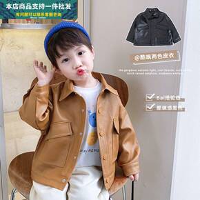 童装男童皮衣皮夹克2021春秋新款韩版中小童宝宝儿...