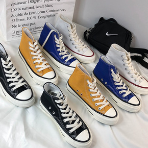 春夏款韩版港风复古1970s厚底高帮帆布鞋女百搭休...