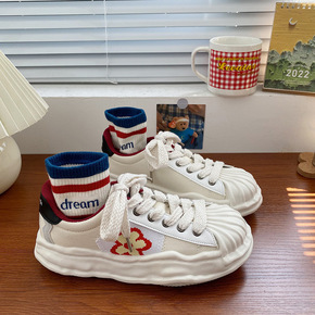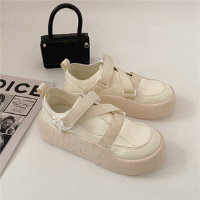 圆头厚底休闲鞋女2022春夏新款百搭中学生韩版潮流...