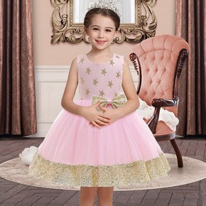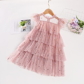 星星亮片连衣裙 夏季新款童装连衣裙 公主风蛋糕裙公...