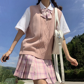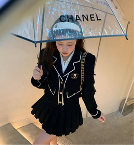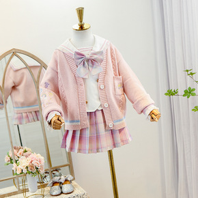 女童套装秋针织开衫jk格子短裙三件套2021秋季新...