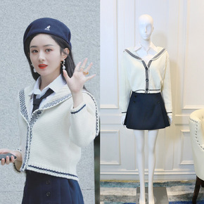 赵丽颖同款水手领撞色长袖羊毛针织开衫女字母披肩宽松...