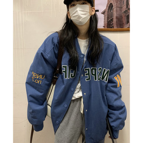 家荒 2021秋冬新款韩版夹棉棒球服字母运动复古港...