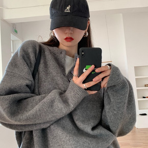 2021灰色毛衣女套头学院风宽松百搭设计感排扣气质...