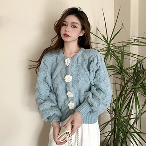 秋季新款爱心贴皮软糯针织开衫女2021气质短款排扣...