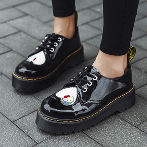 新款软底小皮鞋女英伦风春秋厚底百搭学生日系单鞋黑色...
