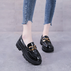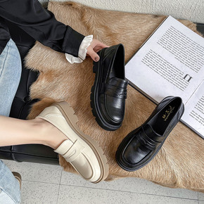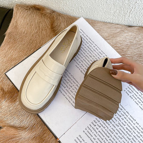 厚底小皮鞋女英伦风2022早春新款百搭圆头松糕乐福...