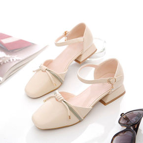凉鞋女2021年新款方头粗跟中跟学生单鞋时装低跟包...