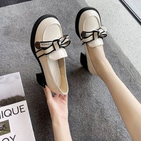 英伦小皮鞋女2022春秋新款乐福鞋头层牛皮学生粗跟...