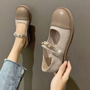 2022春春新款百搭英伦玛丽珍女休闲厚底大头单鞋学...