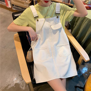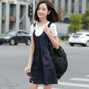 2022春季新款宽松显瘦黑色牛仔背带裙女学生小个子...