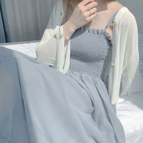 雪纺吊带连衣裙女夏超仙学生韩版长款两件套装裙子...